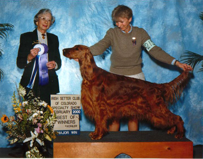 "Madison" is co-owned with Cindy Lloyd of Skyline Irish Setters. She is very sound and correct - a "meat and potatoes" type of bitch.